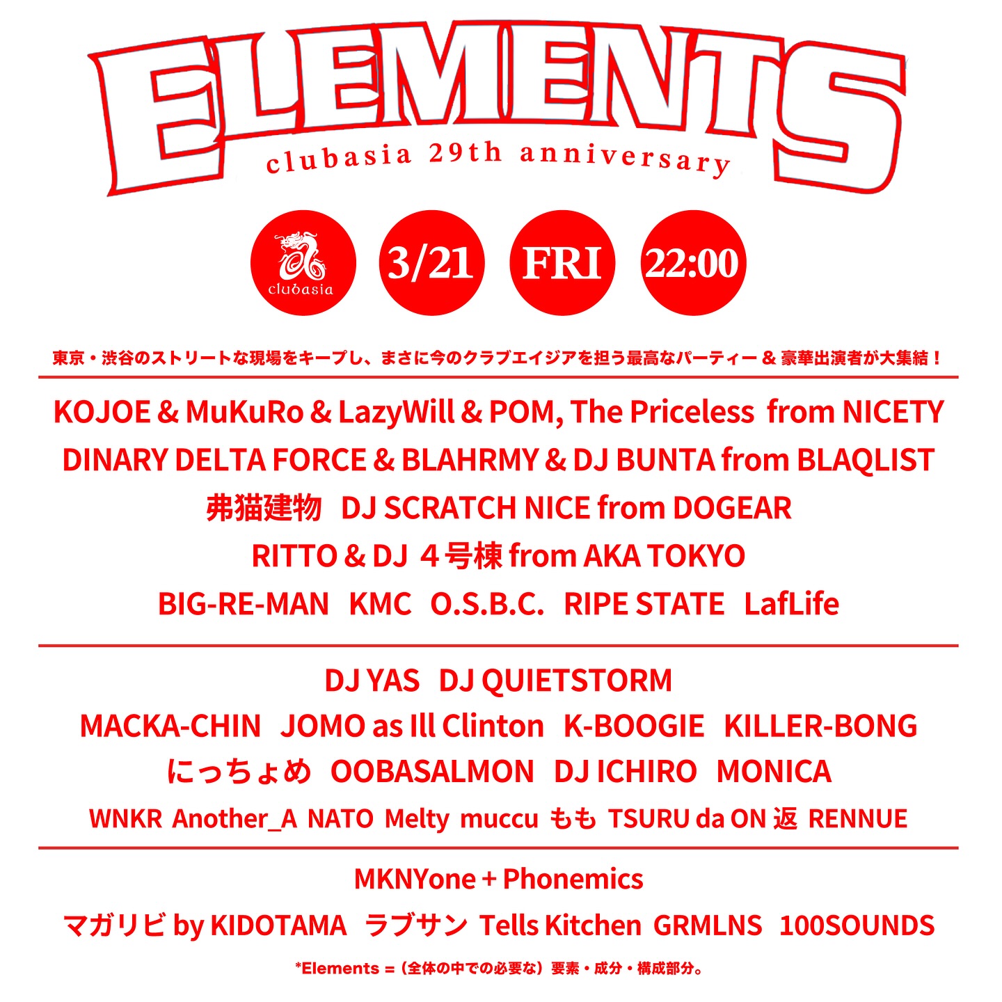 2025.3.21(FRI)【ELEMENTS~clubasia 29th anniversary】